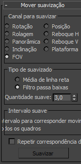 - Executa a mover a suavização com base no tipo de suavizado, faixa, e a quantidade de configurações. Se este botão está desativado, nenhuma correspondência de câmera atual é atribuído.