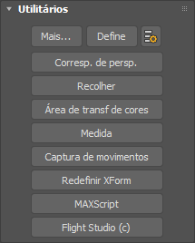 Os utilitários do 3ds Max são fornecidos como plug-ins. 3ds Max é entregue com os utilitários listados abaixo. Alguns utilitários estão disponíveis em outros desenvolvedores, logo, a configuração do 3ds Max pode incluir utilitários não descrito aqui. Pesquise para a documentação que descreve os plug-ins adicionais escolhendo a ferramenta Ajuda