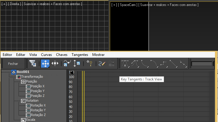 (Abrir editor de minicurva) na extremidade esquerda da barra de trilha. O controle deslizante de tempo e a barra de trilha são substituídos pelo controlador e janelas de chave e as barras de ferramentas da Vista de trilha. Você pode redimensionar a janela da barra de trilha arrastando a borda entre a barra de menus e as barras de ferramentas (faça isso em uma área vazia da barra de ferramentas).