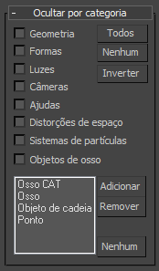Ative as caixas de verificação para ocultar os objetos dessa categoria. Você pode usar os botões Todos, Nenhum e Inverter para alterar rapidamente as configurações das caixas de seleção.