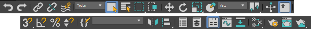 A barra de ferramentas principal, dividida em duas partes para esta ilustração