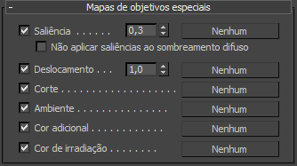 Muitas implementações de material têm botões de atalho para atribuir um mapa a algum dos componentes visual do material. Estes pequenos botões equivalem aos botões na implementação Mapas. Atribuir um mapa a um botão em uma implementação altera o botão correspondente na outra. Existem controles semelhantes para tipos de material que não incluem implementações Mapas específicas.