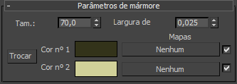 O mapa de Mármore produz uma superfície marmorizada com veios coloridos com plano de fundo colorido. Uma terceira cor é gerada automaticamente.