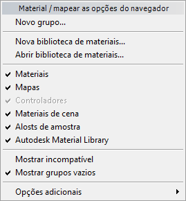 Mostra as opções gerais para gerenciar o navegador de material/mapa