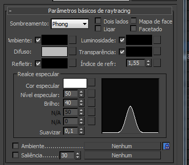 Estes são os controles de realce disponíveis para materiais Tracejamento de raio: