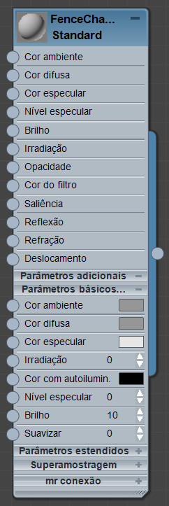 Parâmetros adicionais Esse submenu lista as configurações adicionais, não mapeáveis, do material ou mapa. Selecione um componente para ocultar ou exibir.