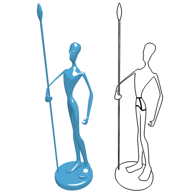 Direita: Iluminada e Realce desativados para renderizar somente a tinta