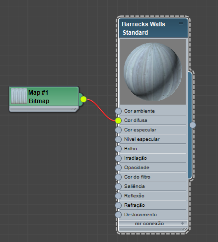 É possível atribuir um mapa a um material "conectando" os nós do mapa e do material.