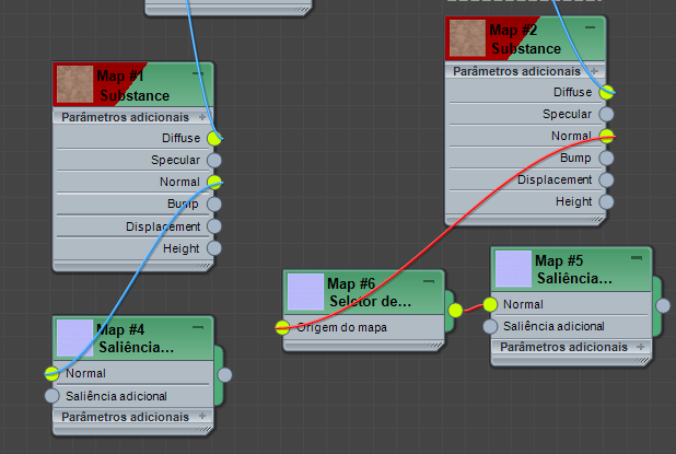 Uma vez que o mapa de substâncias produz diferentes tipos de saída, é possível aplicar o mesmo mapa para diferentes entradas de material, como no exemplo a seguir, que mostra como usar a saída Normal de Substância como um mapa de saliência.