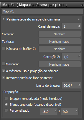 Clique para atribuir um mapa que contém dados da profundidade do Z usados para mascarar a projeção das superfícies indesejadas. Geralmente isto é um arquivo RPF ou um arquivo RLA renderizado usando a mesma câmera com a opção do canal Z ativada.