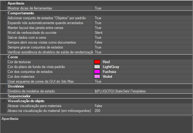 As opções neste painel destinam-se à aparência e comportamento gerais da caixa de diálogo Conjuntos de estado.
