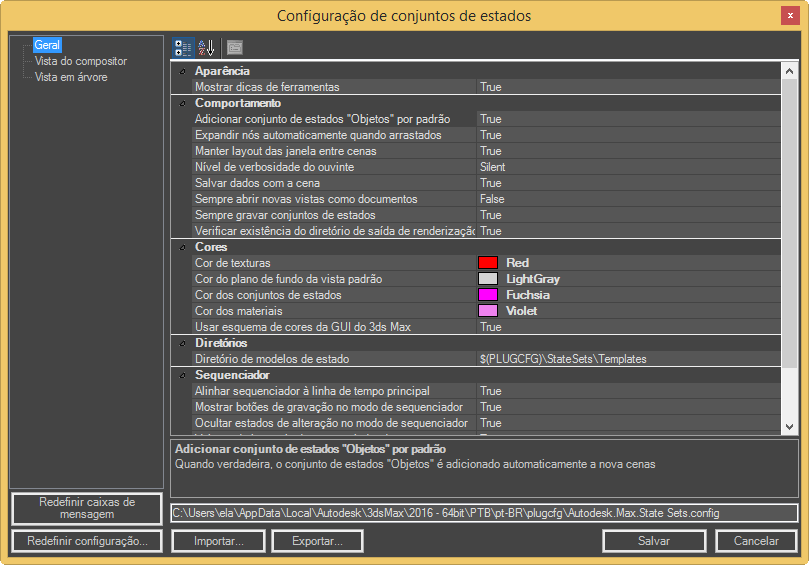 - Salva a configuração atual para um arquivo CONFIG dos Conjuntos de estado.