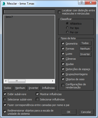 A caixa de diálogo Mesclar permite carregar e salvar influências com ou sem seus dependentes. Em muitos casos, os objetos devem ser referenciados com suas influências, mas a exibição só torna você ciente dos relacionamentos, não impõe que você os referencie externamente.