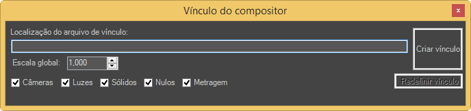 Normalmente, você deixará a Escala global definida como 1.000 no 3ds Max e, em seguida, em Após Efeitos, aumentará o valor da Escala global na caixa de diálogo Configurações do Compositor Link, antes de criar ou atualizar o vínculo.