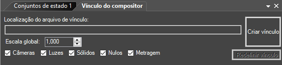 O painel do Compositor Link abre na parte superior da caixa de diálogo Conjuntos de estado.