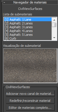 Fornece uma visão geral dos materiais do Civil View carregados na cena atual.