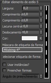 Para as marcas viárias de área preenchida, define a largura dos sinais circunflexos ou listras nas marcas viárias geradas através do limite fechado da forma pai (válido somente se Preencher formas fechadas estiver ativada).