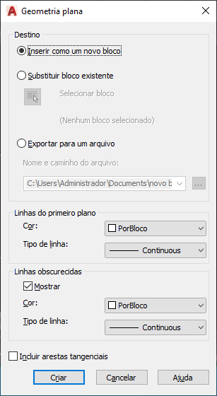 Especifica se deve inserir a representação plana como um bloco no desenho corrente.