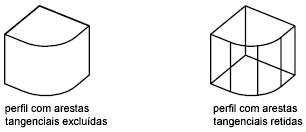 Determina se as arestas tangenciais são exibidas. Uma aresta tangencial é a linha de transição entre duas faces tangentes. É a aresta imaginária onde duas faces se encontram e se tangenciam. Por exemplo, se você fizer a concordância da aresta de uma caixa, serão criadas arestas tangenciais no local em que a face cilíndrica da concordância se mescla com as faces planas da caixa. As arestas tangenciais não são mostradas na maioria dos aplicativos de desenho.