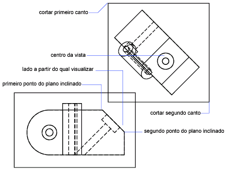 Na viewport original, especifique dois pontos para definir o plano de corte.
