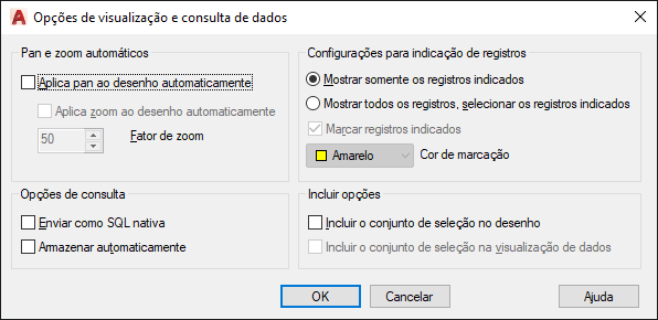 Controla como os objetos vinculados serão exibidos no desenho atual quando os registros correspondentes são selecionados na janela Visualizar dados.