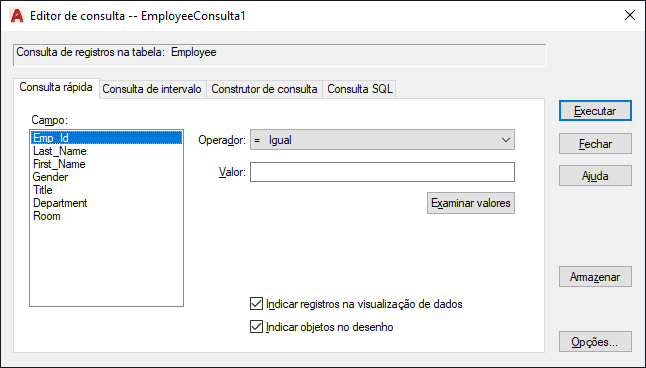 Abre a caixa de diálogo Visualização de dados e opções de consulta.