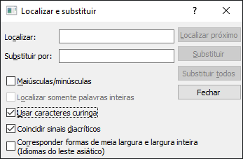 Para obter informações sobre as pesquisas curinga, consulte Referência dos caracteres curinga.