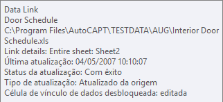 Quando um desenho contendo uma tabela de extração de dados é aberto no AutoCAD LT, o texto da dica de ferramenta indica que a tabela contém dados extraídos. Você não pode atualizar os dados extraídos ou alterar um vínculo de dados, se houver.