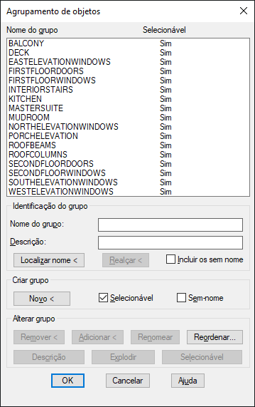 Cria um novo grupo a partir dos objetos selecionados, utilizando o nome e a descrição sob Nome do grupo e Descrição.