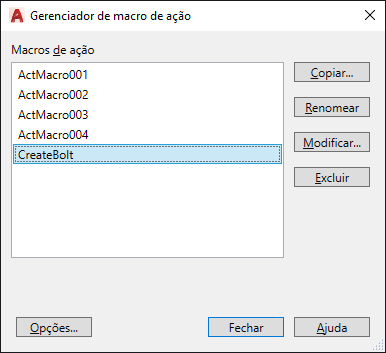 Copia, renomeia, modifica ou exclui os arquivos de macro de ações.