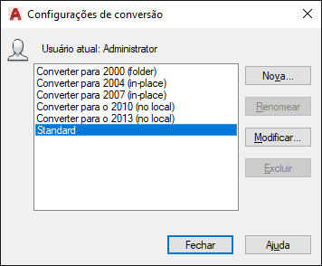 Exibe a caixa de diálogo Modificar configuração de conversão, na qual você pode especificar opções para a conversão de desenho selecionada.