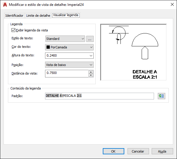 Especifica o estilo de texto a ser utilizado na legenda de vista de detalhe.
