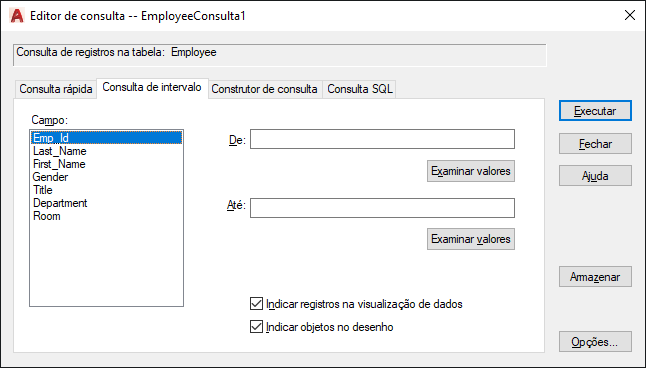 Abre a caixa de diálogo Visualização de dados e opções de consulta.