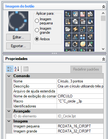 Selecione uma imagem na lista. O nome da imagem será atribuído à propriedade Imagem Pequena, à propriedade Imagem grande ou a ambas as propriedades do comando selecionado.