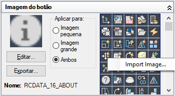 No painel Imagem de botão, clique com o botão direito do mouse na lista de imagens e clique em Importar imagem.