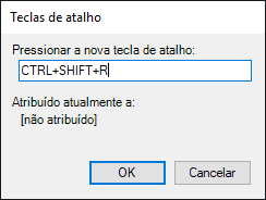 - Clique em OK para atribuir a combinação de teclas e feche a caixa de diálogo Teclas de atalho.