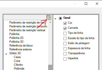 Se a propriedade está selecionada, esta é exibida em uma sobreposição de dica de ferramenta quando o cursor passa sobre um objeto do tipo selecionado na janela de desenho. Limpe a marca de seleção ao lado da propriedade para removê-la para o tipo de objeto selecionado.