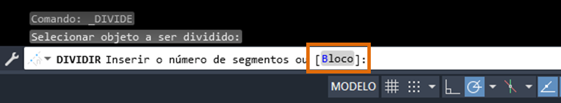 | DIVIDIR | Cria objetos ou blocos espaçados por igual ao longo do comprimento ou perímetro de um objeto. |