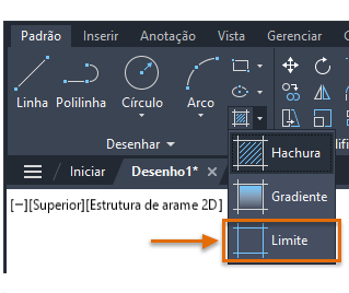 Na guia Início, painel Desenhar, clique em Limite ou insira o comando LIMITE.