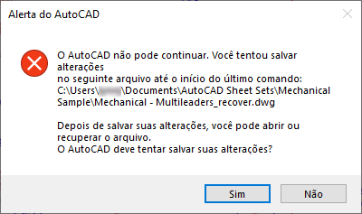 Nota: Após abrir um arquivo de desenho no Gerenciador de recuperação de desenho, será recomendável executar uma inspeção no desenho para verificar se existem erros antes de continuar a trabalhar no desenho.