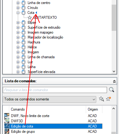 - No painel Lista de comandos, arraste o comando que deseja adicionar na ação de clique duplo no painel Personalizações em <nome do arquivo>.