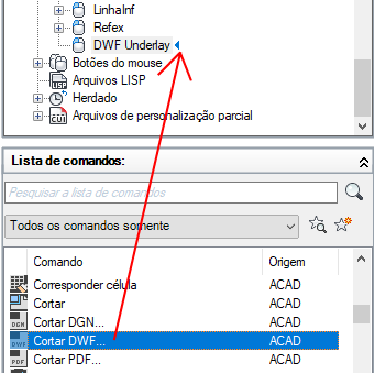 - Se você deseja substituir o comando atual atribuído a uma ação de clique duplo, arraste um comando do painel Lista de comandos para a ação de clique duplo no painel Personalizações em <nome do arquivo>.