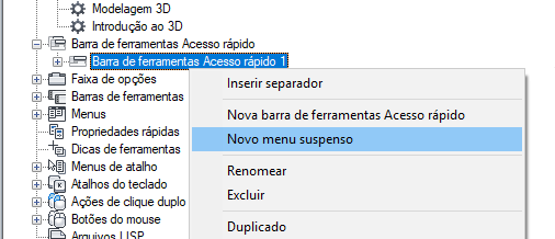Uma nova barra de ferramentas de acesso rápido (denominada Barra de ferramentas de acesso rápido 1) é colocada na parte inferior do nó Barra de ferramentas de acesso rápido.