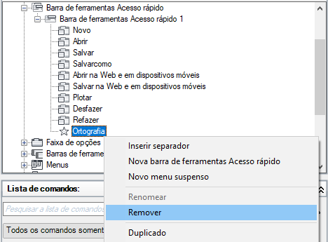 - Clique com o botão direito do mouse no comando que deseja remover e clique em Remover da barra de ferramentas de acesso rápido.