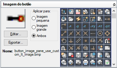 Selecione uma imagem na lista. O nome da imagem será atribuído à propriedade Imagem Pequena, à propriedade Imagem grande ou a ambas as propriedades do comando selecionado.