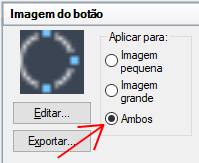 No painel Imagem de botão, em Aplicar para, selecione uma das três opções de atribuição de imagem; Imagem pequena, Imagem grande ou Ambas.