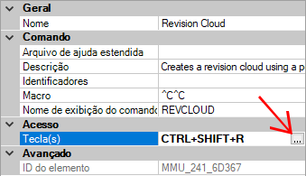 - No painel Propriedades, clique na caixa Teclas e, em seguida, clique no botão […] para abrir a caixa de diálogo Teclas de atalho.