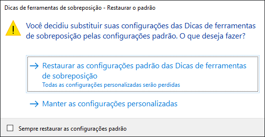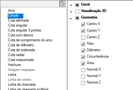 Se um objeto estiver selecionado, as propriedades desse tipo de objeto serão exibidas em uma dica de ferramenta de sobreposição quando o cursor passar sobre um objeto do mesmo tipo. Limpe a marca de seleção ao lado de um tipo de objeto para remover o suporte para esse tipo de objeto das dicas de ferramentas de sobreposição.