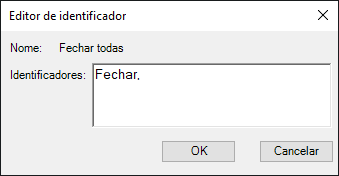 Um menu suspenso exibe uma lista dos identificadores anteriormente utilizados (se houver). Clique em um identificador no menu para usar aquele identificador. Você pode adicionar mais de um identificador a um comando; separe cada identificador com uma vírgula.