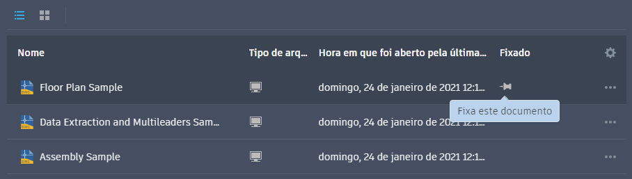Fixar um arquivo mantém-no exibido na parte superior da lista até que seja desafixado.